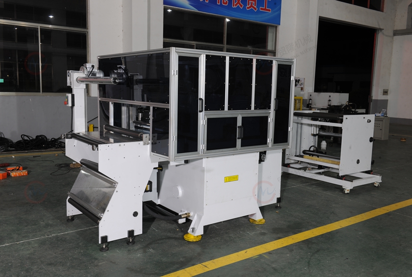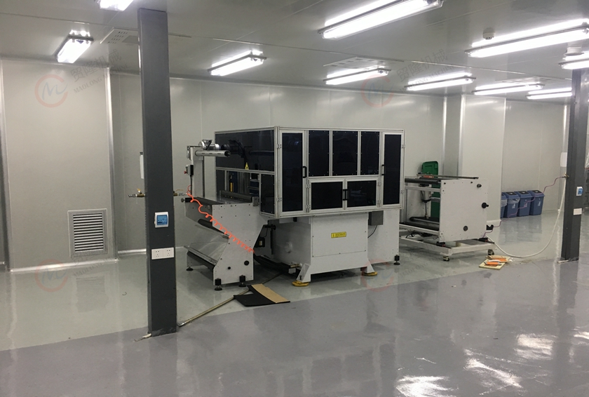 13、机器配有废料复卷及成品收料装置,PET膜片收料机构,可使贴膜与收料同步进行,避免由于先撕PET后贴膜所导致的落尘风险。