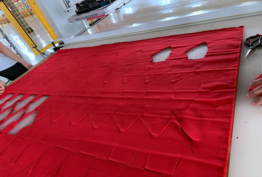 1、設備採用三軸式電腦自動排版,國際領先技術製造,設計合理用於提高產能節省人工,可多卷材料同時裁切(如下图)。