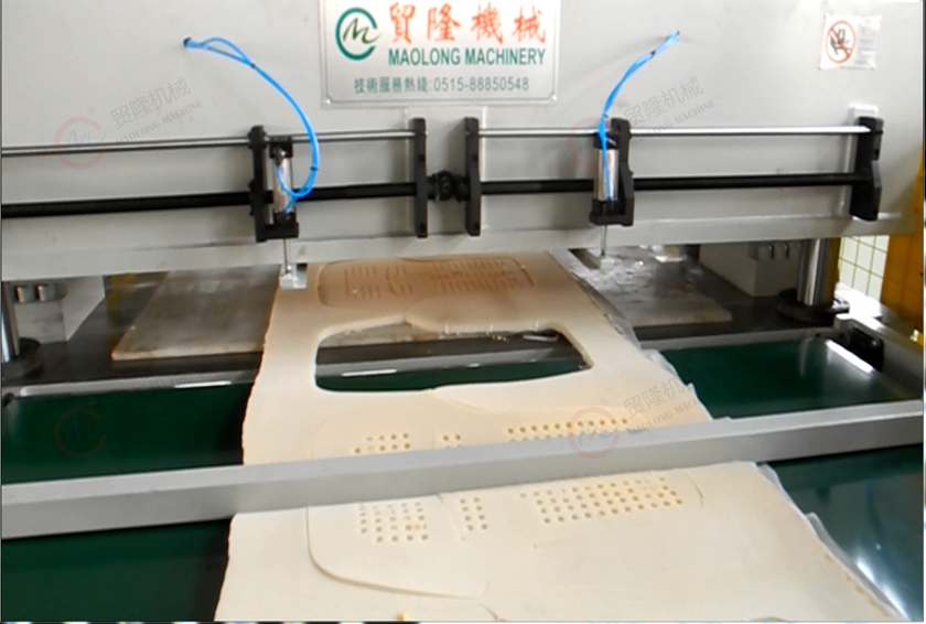 本机主要适用于薄海绵、EVA、碳纤维材料、吸音棉、隔音棉等材料的成型模切作业。此客户是生产汽车座椅配件的厂商。卷材、片材、硬料、软料均可作业。产品技术性能指标达国际先进水平,可配合生产流水线作业。自动化程度高,节省人工,节省原材料。